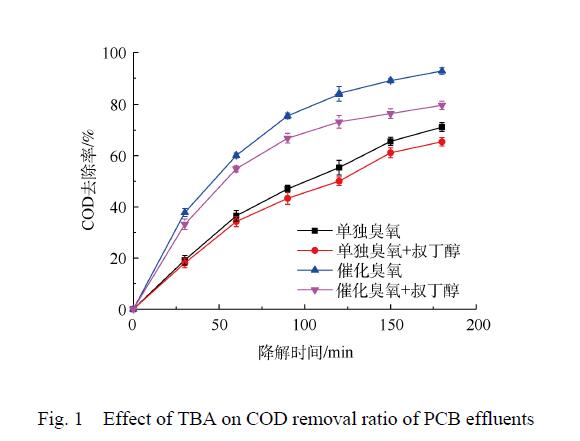 圖 1 TBA對(duì)PCB廢液降解率的影響