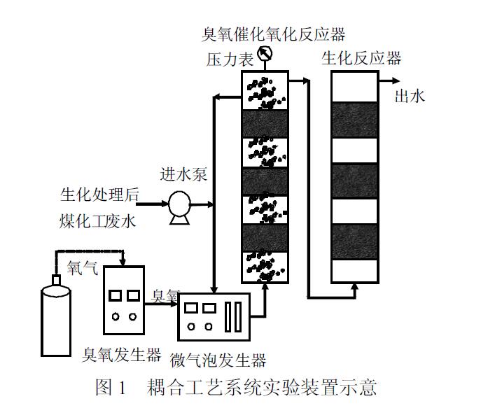 本研究采用微氣泡臭氧催化氧化-生化耦合工藝,對某實際煤化工廢水生化出水進行深度處理.水質分析表明,該廢水生化出水存在大量含氮雜環芳烴類污染物,可生化性極差,傳統曝氣生物濾池(BAF)對其COD去除率僅6.4%,難以采用生化工藝直接處理.本研究采用微氣泡臭氧催化氧化含氮雜環芳烴類污染物,提高廢水可生化性并去除部分COD,而后采用生化處理進一步去除COD 和氨氮.此外,還考察了微氣泡臭氧催化氧化-生化耦合處理去除污染物性能,并分析了處理過程中含氮雜環芳烴類污染物降解和可生化性變化,以期為該耦合工藝應用于煤化工廢水深度處理和含氮雜環芳烴類污染物去除提供參考.