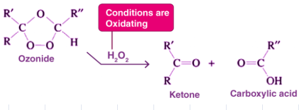 氧化處理:當(dāng)使用氧化劑過氧化氫代替鋅或二甲基硫來處理該臭氧化物時(shí),所形成的醛被氧化為羧酸。 高熱酸存在下的高錳酸鉀也可用于氧化處理。