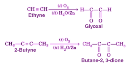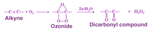 炔與臭氧發(fā)生反應(yīng),導(dǎo)致炔斷裂。 這產(chǎn)生了臭氧化物中間體。 在鋅金屬的幫助下進(jìn)行簡單的含水后處理,很終產(chǎn)生二羰基化合物。 反應(yīng)可以寫成: